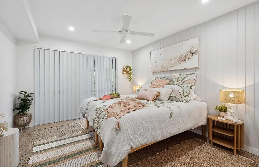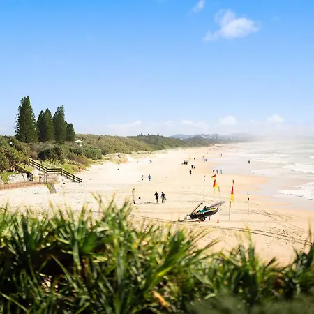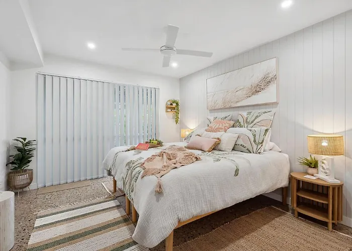 ベッドルーム1室のTreasureview Beach House Suite #9C Ground Floor Studio クーラムビーチはクーラムビーチの住宅街に位置し、ティックル・パークから歩いてわずか8分です。